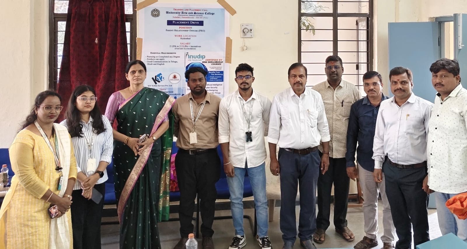 యూనివర్సిటీ ఆర్ట్స్ అండ్ సైన్స్ కళాశాలలో ట్రైనింగ్ అండ్ ప్లేస్మెంట్ సెల్ ఆధ్వర్యంలో అనుదీప్ మరియు కే12 ఆర్గనైజేషన్ ల వారి ఐబిఎం ట్రైనింగ్ ప్రోగ్రాం మరియు పి ఆర్ ఓ పోస్టులకు గాను రిక్రూట్మెంట్ డ్రైవ్ అండ్ సెలెక్షన్ చేపట్టడం జరిగింది అని కళాశాల ప్రిన్సిపాల్ ప్రొఫెసర్ జ్యోతి తెలియజేశారు.