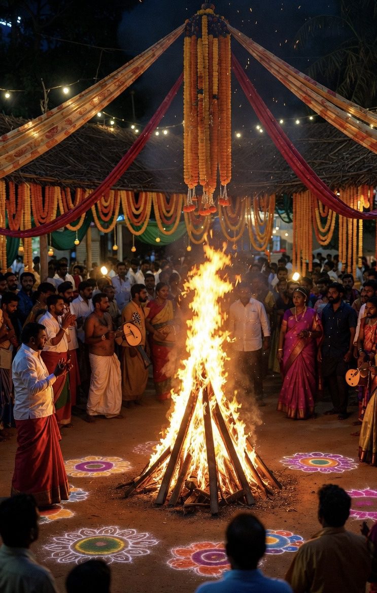 • శాస్త్రీయంగా → చలికాలంలో ఉష్ణోగ్రతలు తగ్గి చలి తీవ్రమవుతుంది. మంటల వేడి శరీరాన్ని రక్షిస్తుంది.