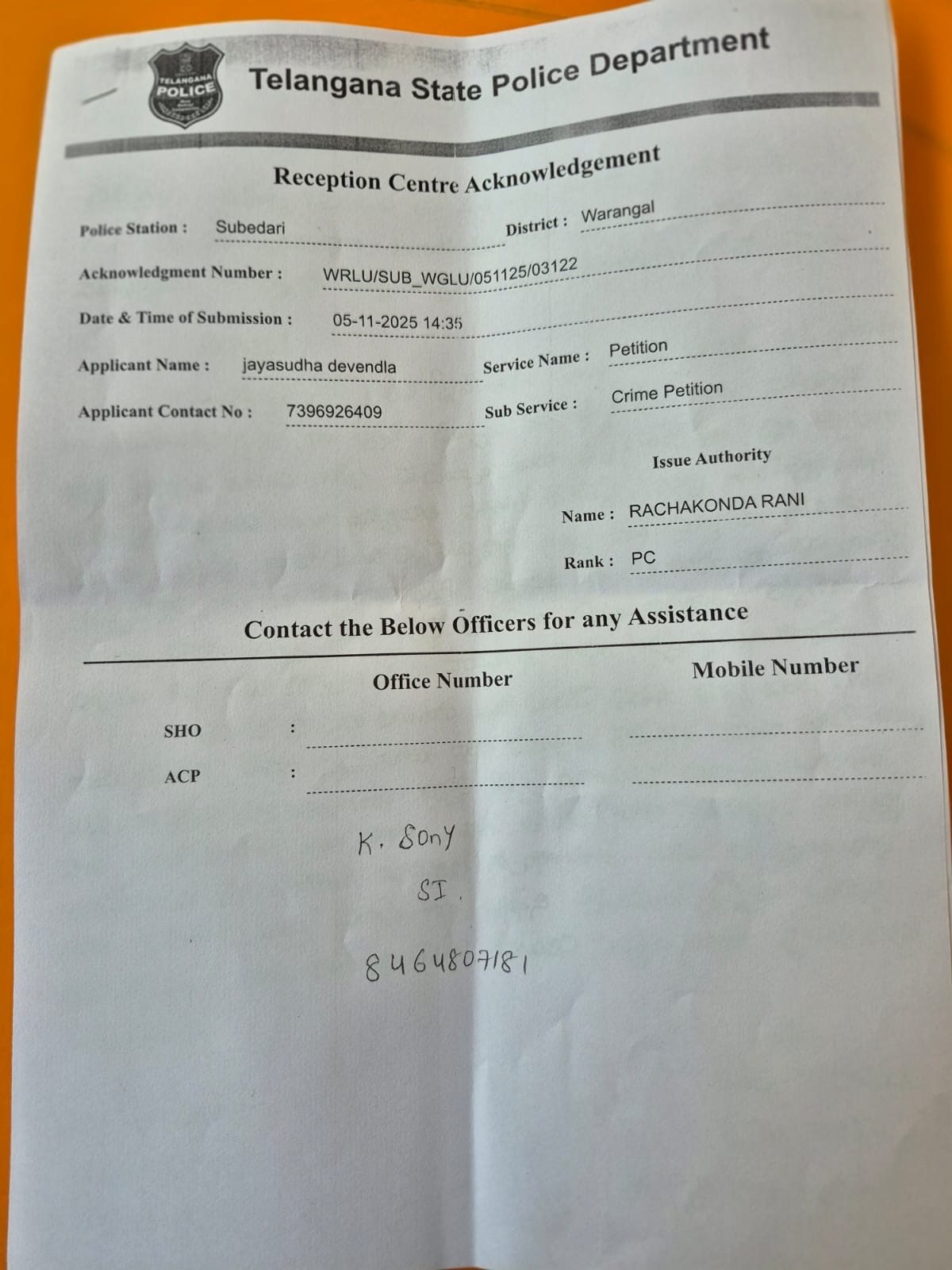 హనుమకొండ చౌరస్తాలో లేడీస్ ఎంపోరియం నిర్వహించే జయసుధ పేరుపై 20 లక్షలు బ్యాంకు లోన్ తీసుకొని ఆమెని లైంగిక వేధింపులకు గురిచేసి లోన్ చెల్లించకుండ ఇంటిపై దాడి చేసి రాధాకృష్ణ జయసుధ దంపతులను కొట్టి ఆమె ఒంటిపై ఉన్న బంగారు నగలను గుంజుకోవడంతో పాటు కారు ఎత్తుకెళ్లిన సంఘటన లో బిఆర్ఎస్ నాయకుడు బండి సందీప్ చింటూ, అతని తల్లి నర్సంపేట మాజీ మున్సిపల్ కౌన్సిలర్ బండి భారతి, బండి రమేష్ తో పాటు మరికొందరి పై సుబేదారి పోలీసులు కేసు నమోదు చేశారు.