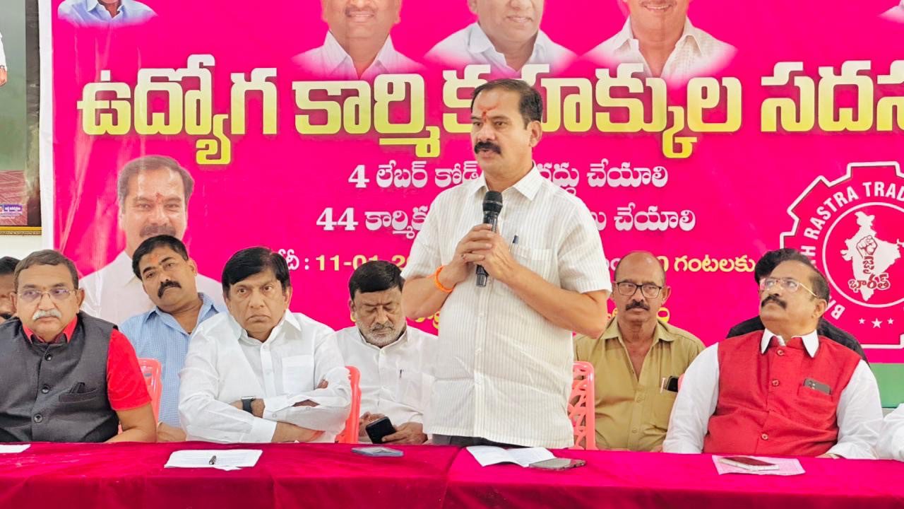 4 నూతన కార్మిక చట్టాల రద్దు కోసం భారత రాష్ట్ర సమితి పార్టీ అధ్యక్షులు కేసీఆర్, కార్యనిర్వాహక అధ్యక్షులు కేటీఆర్ ఇప్పటికే రాష్ట్ర స్థాయి కార్మికుల కోసం సదస్సును నిర్వహించిన విషయాన్ని గుర్తు చేశారు.