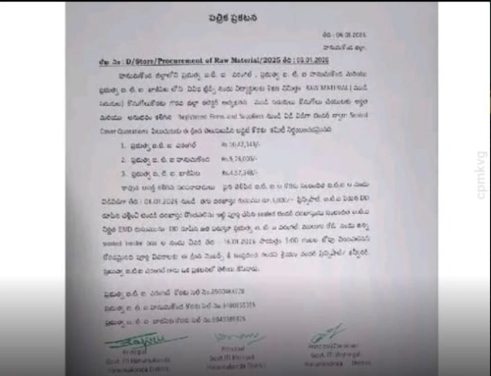 Homeహన్మకొండఐటీఐల ముడి సరకుల కొనుగోలుకు రూ.9.18 కోట్ల టెండర్ నోటిఫికేషన్ జారీ