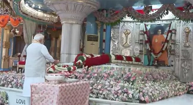 పుట్టపర్తి సత్య సాయిబాబా సన్నిధిలో ప్రధాని నరేంద్ర మోడీ