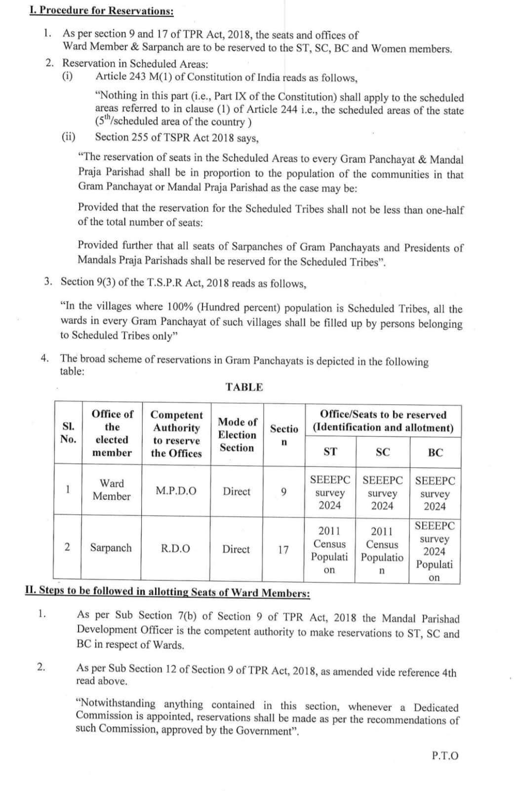 ఎస్సీ, ఎస్టీ, బీసీ, మహిళా రిజర్వేషన్లు రొటేషన్ పద్ధతిలో అమలు చేయాలని నిర్ణయిస్తూ జీవో నెంబర్ 46 విడుదల చేసిన తెలంగాణ ప్రభుత్వం.